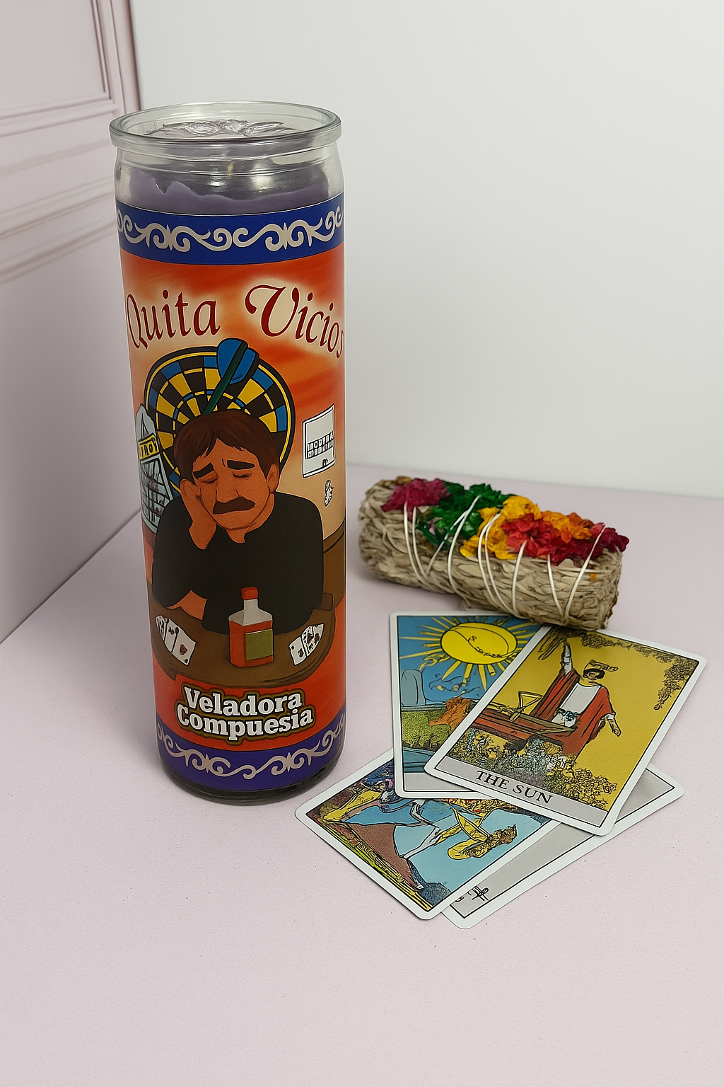 Esta veladora está dedicada a quienes buscan dejar atrás malos hábitos o adicciones. Su luz actúa como un apoyo espiritual para fortalecer la fuerza de voluntad, disipar pensamientos de dependencia y brindar claridad mental. Al encenderla, se pide ayuda para cortar de raíz todo lo que ata y limita, abriendo paso a una vida más sana, equilibrada y en paz.